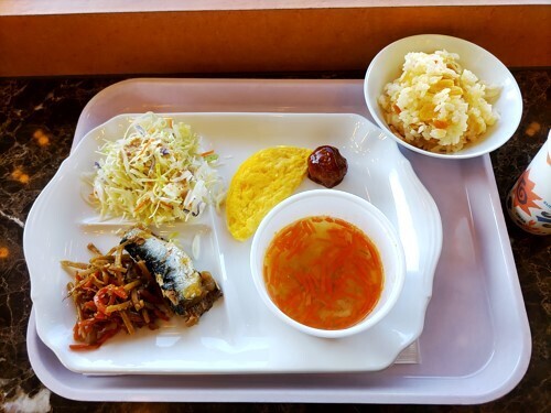 シンプルイズベストなビジホ朝食。混ぜご飯うれしいー。