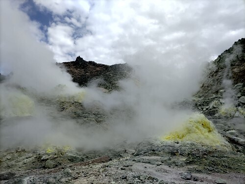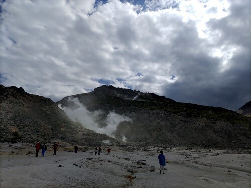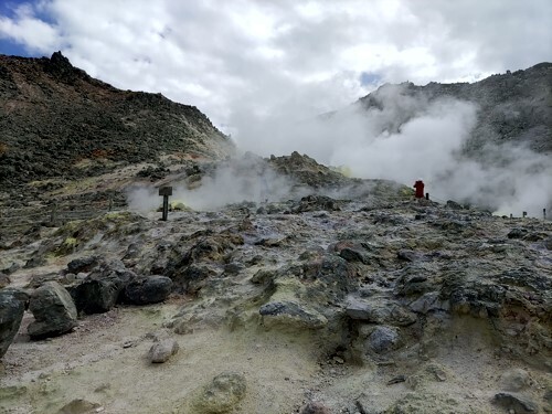 あちらこちらから立ち上がる白煙。ボコボコと音を立てて温泉も湧いてます。
