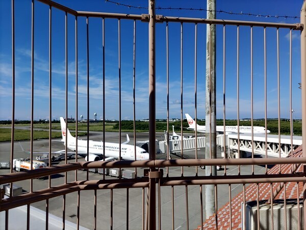 展望デッキで飛行機眺めて
