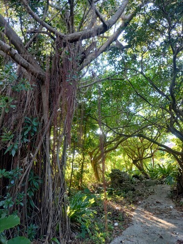 空港前の大通り沿いすぐに、こんもりガジュマルの茂み。