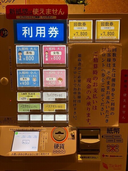 湯舟や岩盤浴の種類は確かにこちらの方が多いんだけど、お値段は倍。