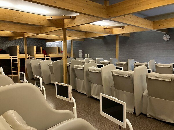 モニター付リクライニングシートがずらりの一画に