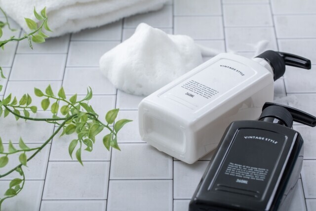 浴室の備え付けはシャンプー、コンディショナー、ボディソープ、